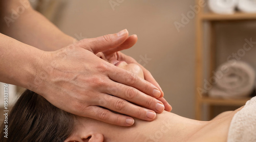 Professional hands supporting base of skull for neck stretch