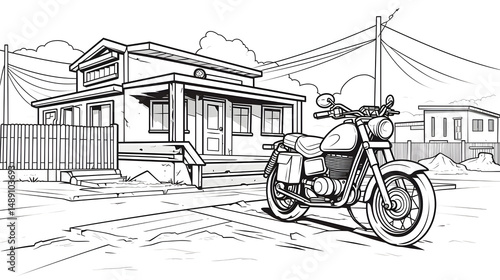 Professional Image of Degraded Line City Landscape with House and Man Riding Motorcycle
