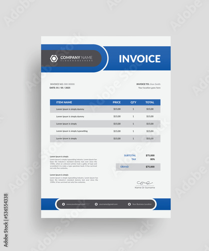 Professional modern clean business invoice design or payment agreement design template for corporate office