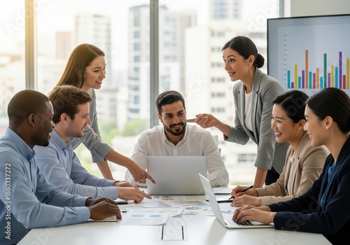 Professional multi-ethnic group brainstorming new strategies during an office meeting