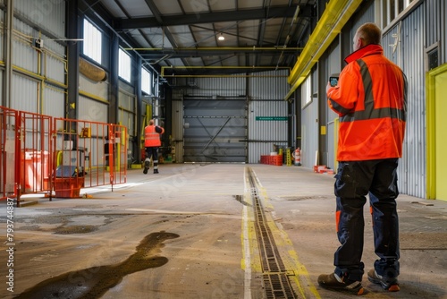 Professional Photography of health and safety officers conducting inspections and promoting workplace safety in the Health and Safety Department, Generative AI