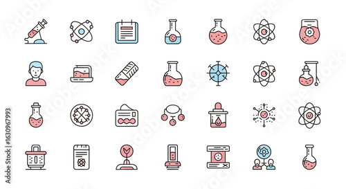 Professional science icons depict research, discovery, and innovation with colorful modern graphics