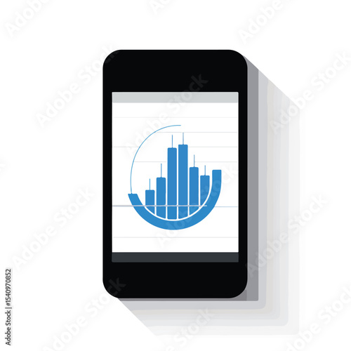 Professional Smartphone Statistics Bars Icon Illustration for Data Analysis and Visualization