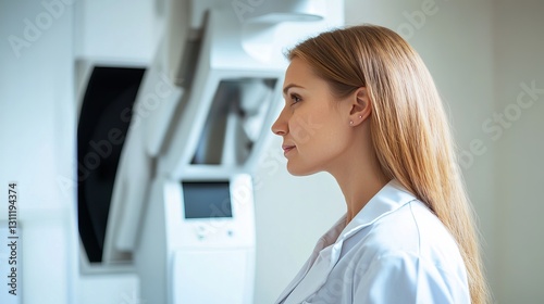 Professional Technician Calibrating Wide Ray Machine in Modern Laboratory Setting