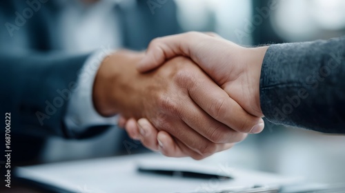 Professionals shaking hands to seal a business deal representing agreement trust and success in a corporate setting