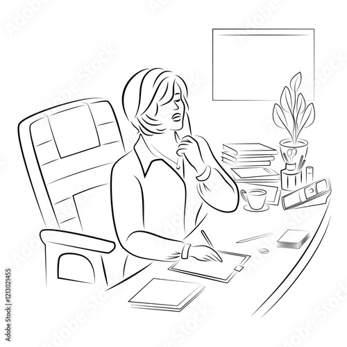 Profile of a cute lady. Young girl at work in the office sitting at the table and working secretary. woman is very busy. Vector illustrations.