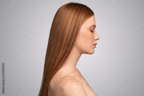 Profile of calm ginger female