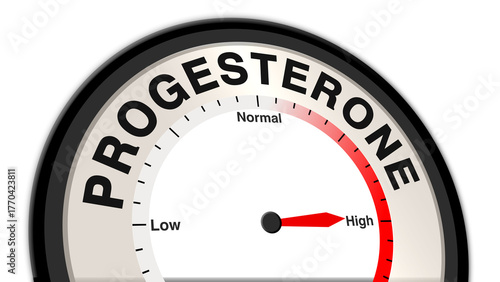 Progesterone at high levels displayed on a barometer or tachometer, indicating elevated hormone levels, potential health impacts, and the need for urgent medical attention or monitoring
