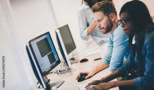 Programmers cooperating at information technology company
