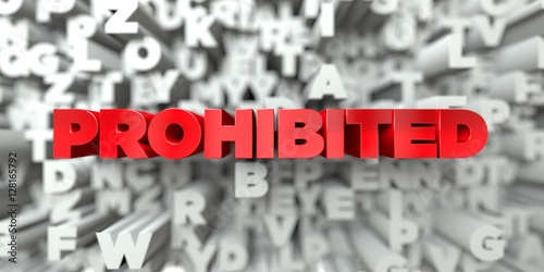 PROHIBITED - Red text on typography background - 3D rendered royalty free stock image. This image can be used for an online website banner ad or a print postcard.