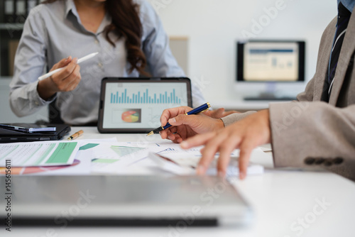 Project manager working and update tasks with milestones progress planning and professional investor working new start up project in the office.