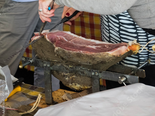 prosciutto crudo in morsa su tavolo