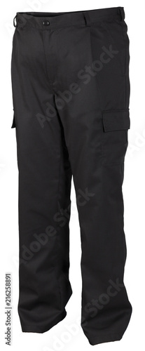 Protective black work trousers isolated on white background