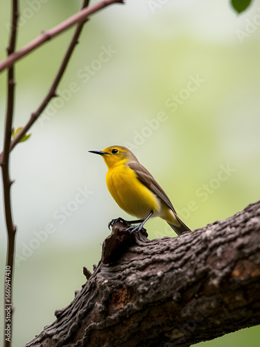 Prothonotary warbler on tree, USA