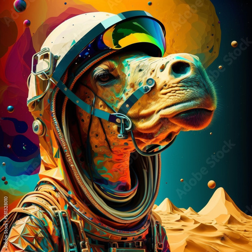 Psychedelic and futuristic astronaut camel animal