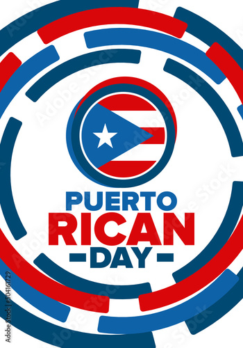 Puerto Rican Day. National happy holiday. Festival and parade in honor of independence and freedom. Puerto Rico flag. Latin american country. Patriotic elements. Vector poster illustration