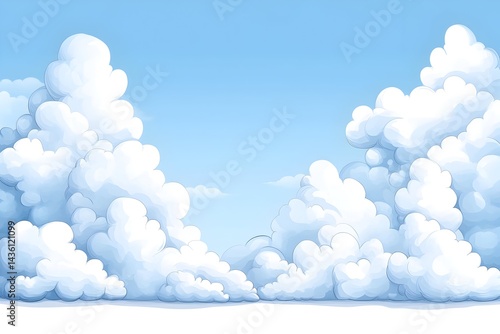 Puffy white clouds against a clear blue sky, creating a serene and idyllic scene