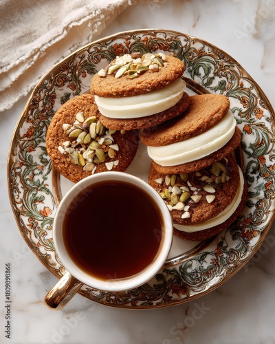 Pumpkin Spice Cookie Sandwiches on Marble Surface.