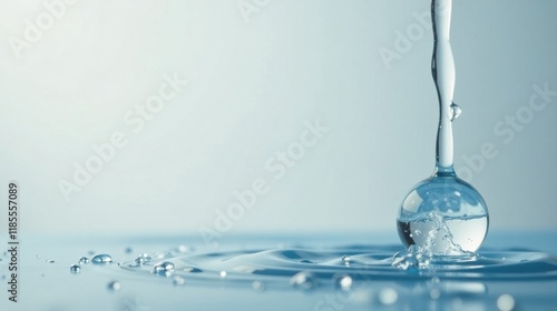 Pure Water Droplets Falling into a Glass Orb Creating Ripples