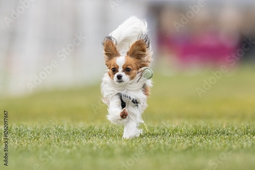 Purebred Papillon Running Lure Course Sprint Dog Sport