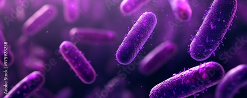Purple bacteria in microscopic view with glowing details, scientific research and microbiology concept
