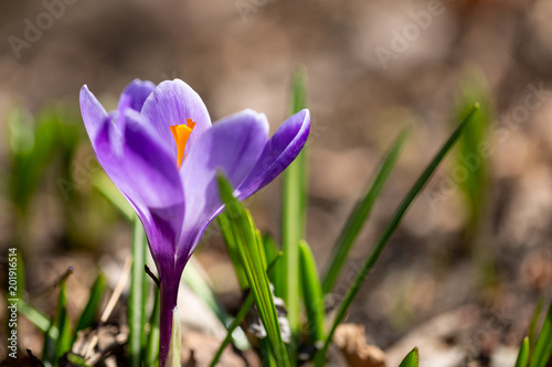Purple crocus with a soft background