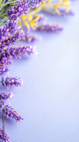 Purple Lavender Flowers Border on Soft Lilac Background