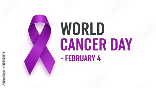 Purple ribbon awareness graphic promoting awareness for world cancer day on february fourth