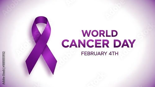 Purple ribbon awareness symbol for World Cancer Day in February