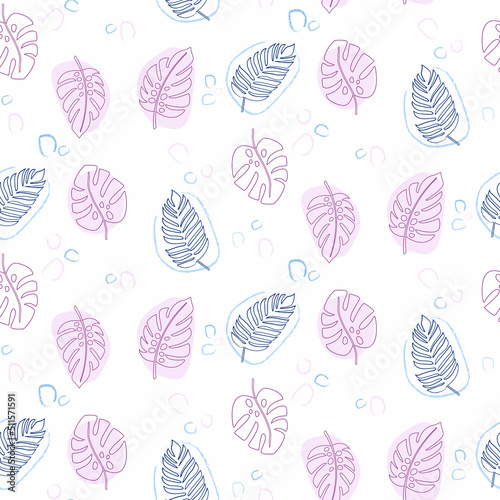Purple seamless pattern with tropical leaves