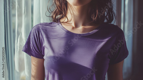 Purple Shirt, Soft Light, Calm Pose