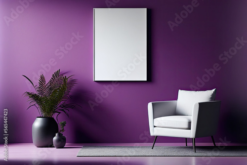 Purple simple interior with empty space, Generative AI