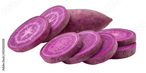 Purple Sweet Potato Slices Composition, Isolated on Transparent Background, Food Photography, Vegetable, Sweet Potato, Purple Yam, Food