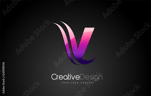 Purple Violet V Letter Design Brush Paint Stroke on Black Background