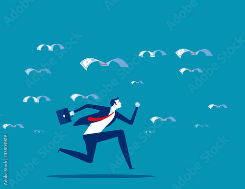 Pursue the migration of money. Business finance and economy concept, Flat cartoon vector design.