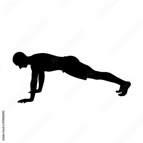 Push-Up Man Silhouette – Workout Pose Vector | Bodyweight Fitness Icon | Male Exercise Shadow Art | Training Position Clipart | Strength Workout Graphic | Athletic Plank Form Illustration