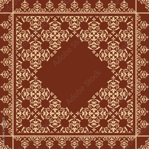 quadratic brown background with beige vintage ornament - vector