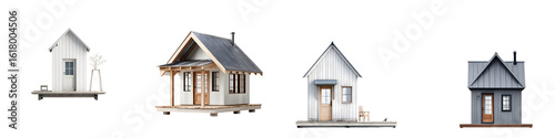 Quaint Rustic Houses: Charming Architectural Variations Isolated on White