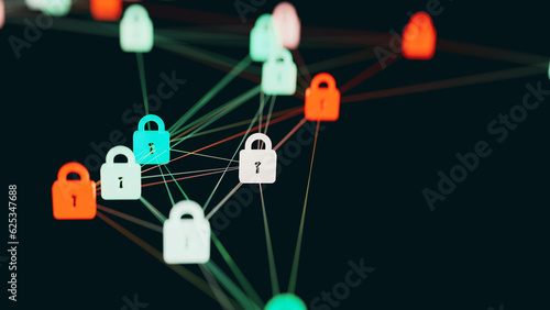 Quantum communication cryptography and internet security concept expressed as a padlock, 3d rendering