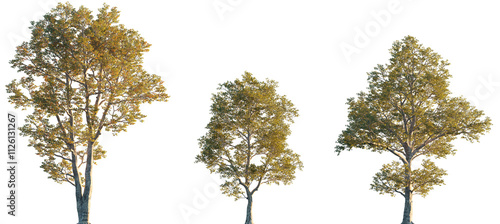 Quercus laevis Turkey Oak frontal set trees street summer trees medium isolated png on a transparent background premium cutout