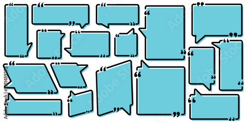 Quote box frame big set for the great design of speech quotation marks. Vector bubble quotation, comment, message borders. Text in brackets. Quote box frame collection.