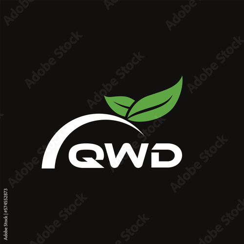QWD letter nature logo design on black background. QWD creative initials letter leaf logo concept. QWD letter design.