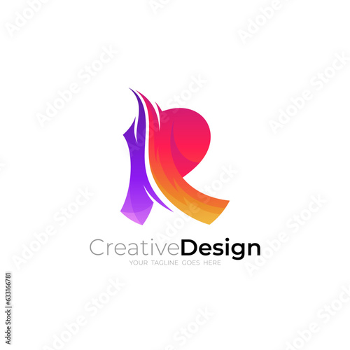 R logo and fire design combination, 3d colorful