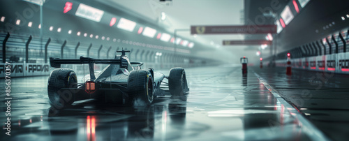 Race Car on Starting Line, Wet Track at Night, High-Speed Competition, Dynamic Action