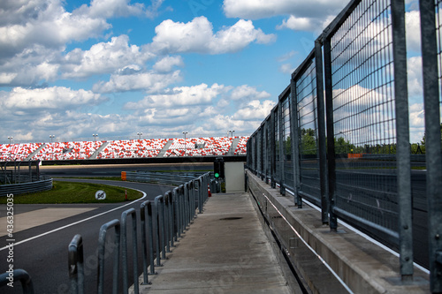racing sports cars at the circuit race along the track on a sunny day