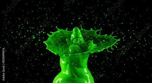 Radiant Lime Splash: Liquid Burst Against A Black Backdrop Creation