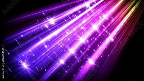 Radiant Purple Light Streaks with Sparkling Stars