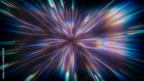 Radiant rainbow gradient light patterns erupt from a central point and sparkle in the light