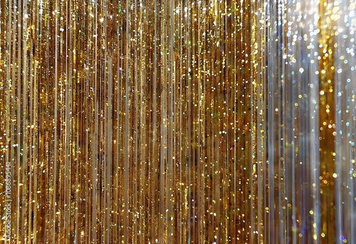 Radiant Sparkling Curtain – Rows of Gold and Silver Glitter Strands for Dynamic, Festive Backdrops