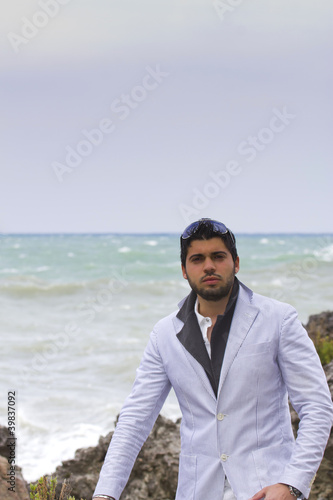 Ragazzo in giacca al mare